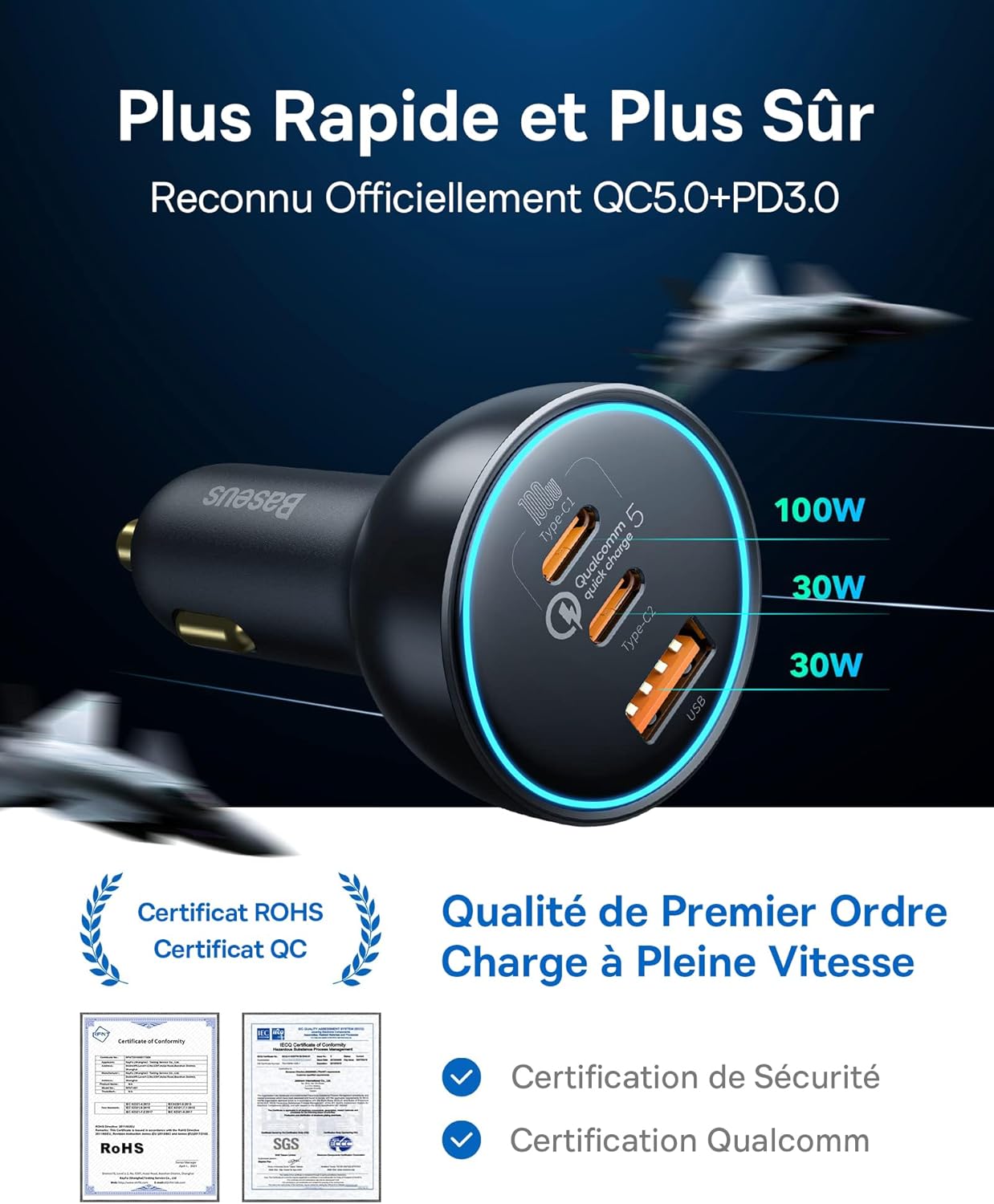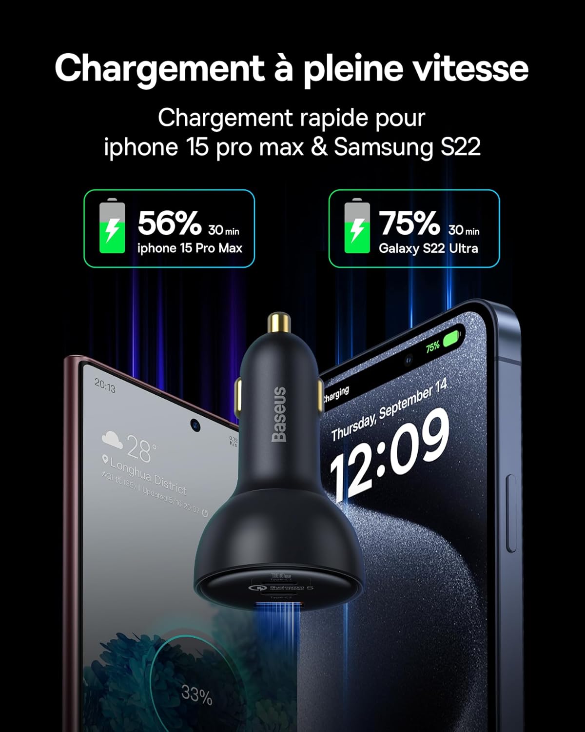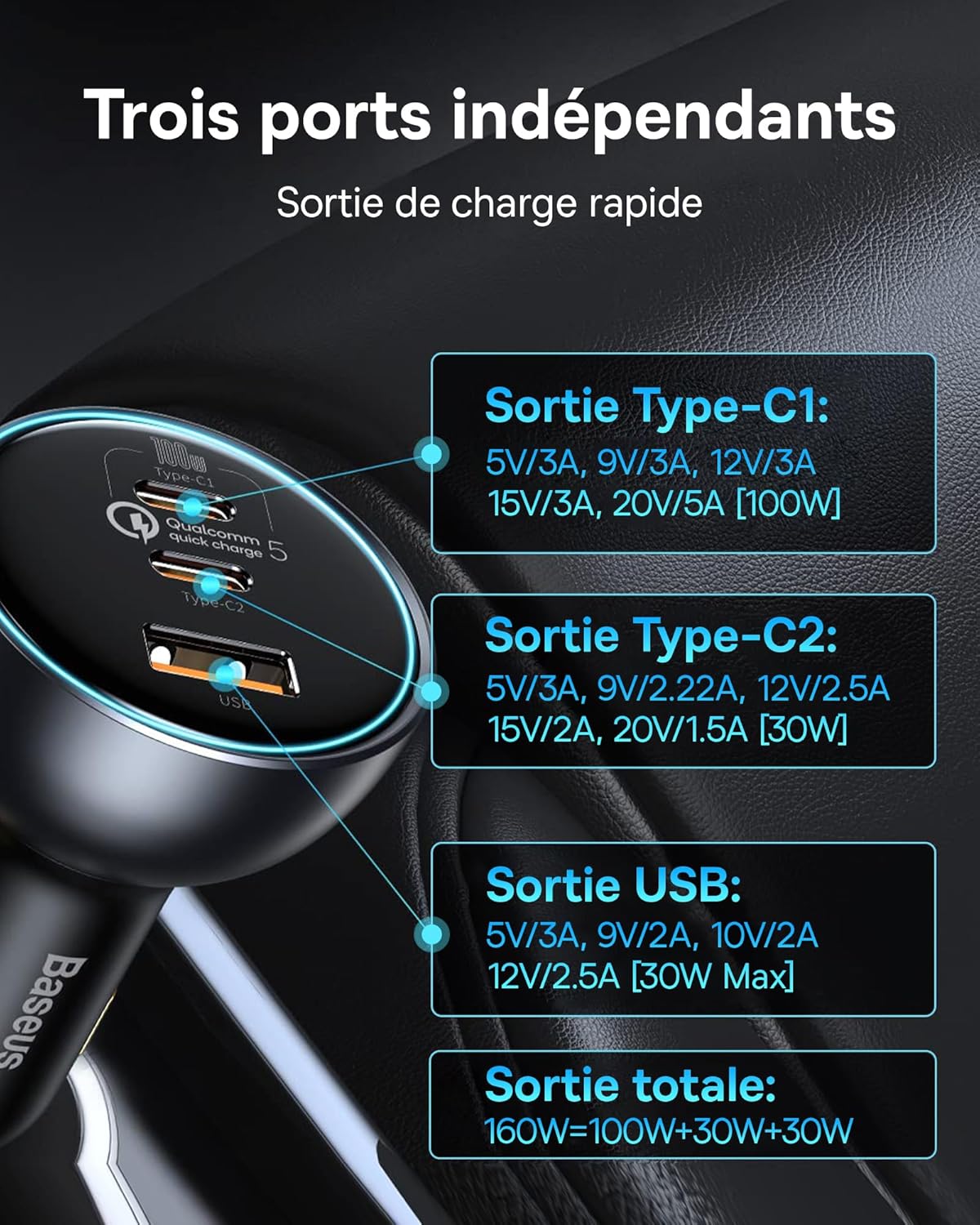 L’Ordre dans la Voiture : Chargeur avec câbles rétractables intégrés (Lightning, USB-C, Micro-USB) pour une voiture toujours rangée. Recharge rapide de tous les appareils.