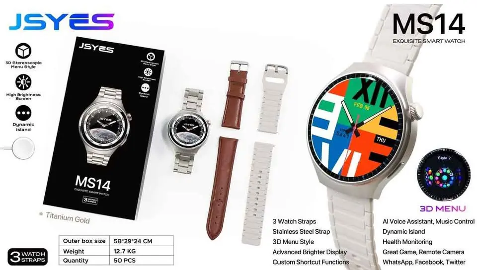 Découvrez la jsyes MS14, une montre connectée conçue pour allier élégance et performance. Inspirée du design épuré de la GT5 Pro, cette montre est dotée d’un boîtier sophistiqué et de fonctionnalités avancées qui vous accompagneront au quotidien.