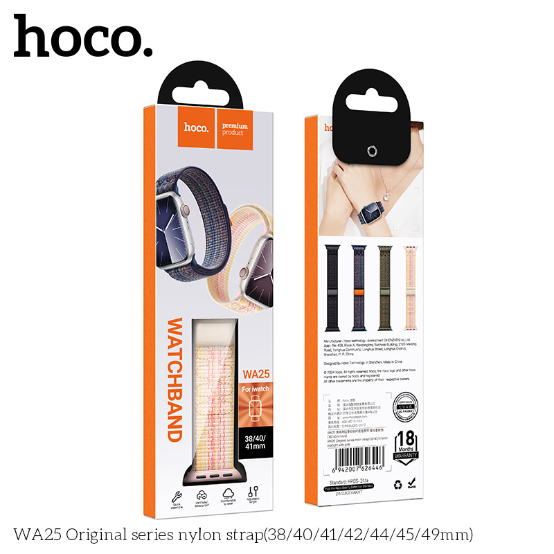 Le bracelet en nylon WA25 Original Series (38/40/41mm) est un choix simple et fiable pour votre Apple Watch. Le nylon tressé est léger, respirant et très confortable à porter, même pendant de longues heures. Il est idéal pour un usage quotidien et les activités sportives, et résiste à l’usure du temps.