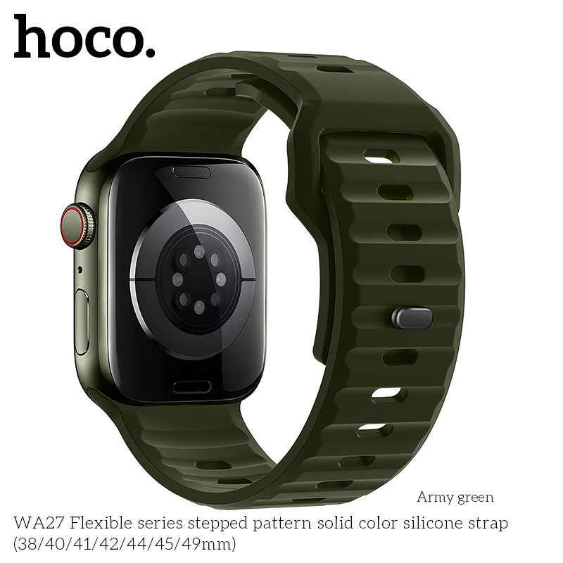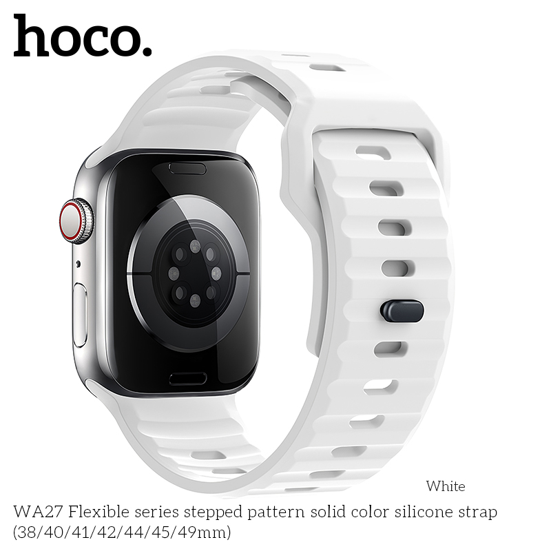Le bracelet en silicone WA27 Flexible Series avec motif à marches (38/40/41mm) est un accessoire élégant pour votre Apple Watch. Son motif texturé unique apporte une touche de sophistication. Le silicone de haute qualité est confortable et durable, ce qui le rend parfait pour le quotidien en Tunisie.